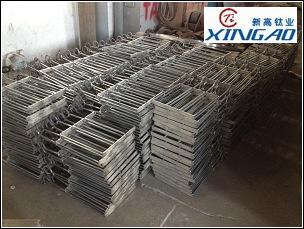 各種規(guī)格鈦材掛具;(可按需方要求設計制造-各種非標鈦設備)